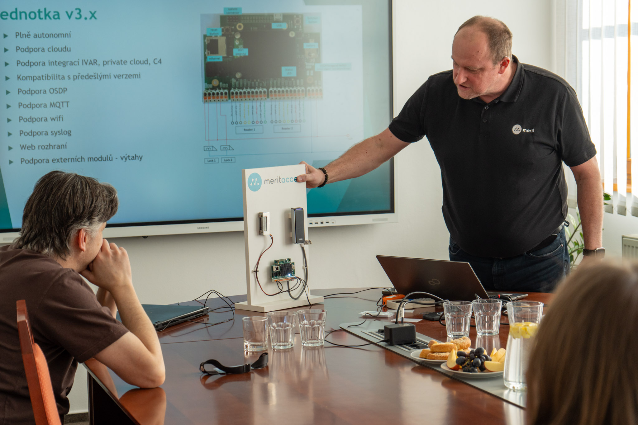 Na závěr proběhla technická prezentace nové řídicí jednotky DoorUnit, která rozšiřuje možnosti instalace a zvyšuje celkovou efektivitu přístupového systému.